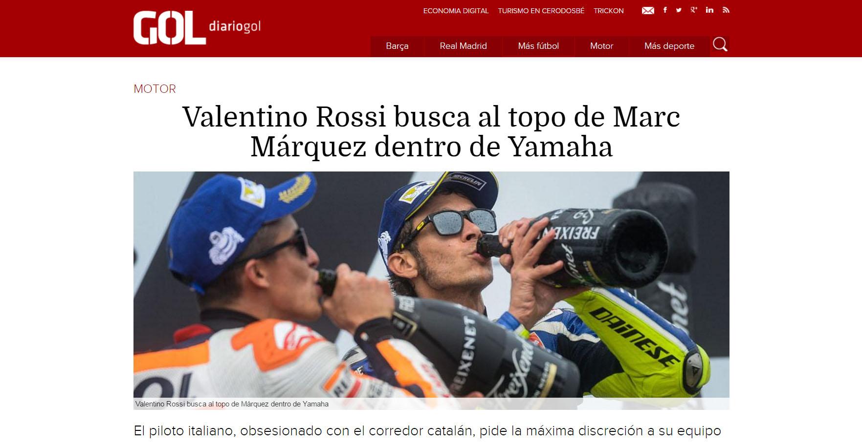 Hal itu dibuktikan dengan banyaknya data rahasia pembalap asal Italia itu yang bocor, termasuk data yang cukup krusial, yakni telemetri motor Yamaha YZR-M1. Tidak hanya memberi bukti, Diario Gol bahkan secara terang-terangan menyebut sosok mata-mata tersebut, yakni rekan setim Rossi, Jorge Lorenzo.