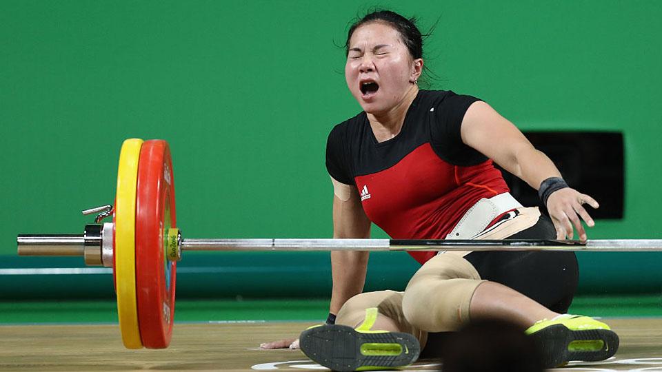 Lifter Indonesia, Dewi Safitri kurang beruntung untuk mendapatkan medali bagi Indonesia di angkat besi kelas 53kg yang diselenggarakan di Paviliun 2, Riocentro.