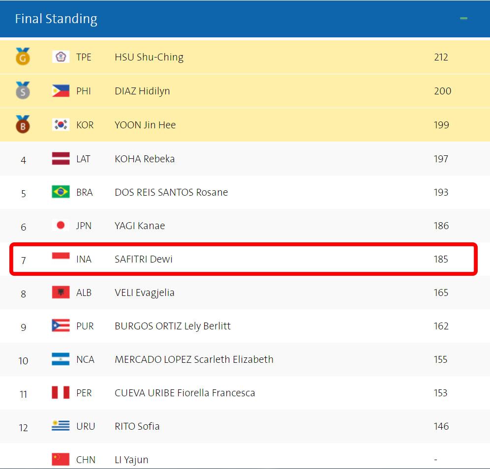 Kendati demikian, meski belum dapat menyumbangkan medali di Olimpiade tahun ini, setidaknya Dewi Safitri memiliki catatan positif, yaitu menempati posisi 10 besar. Dewi menempati posisi ke-7 dengan total mengangkat beban sebesar 185kg.