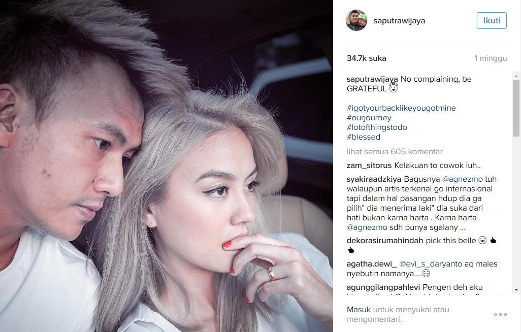 Pemilik akun Instagram @citra_kirana_maharani bahkan mempertanyakan mengapa Agnes tak seantusias Wijin dalam urusan mengunggah foto kebersamaan keduanya.