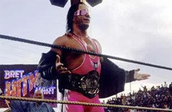 Penampilan ikonik Bret Hart saat aktif menjadi pegulat Smackdown.