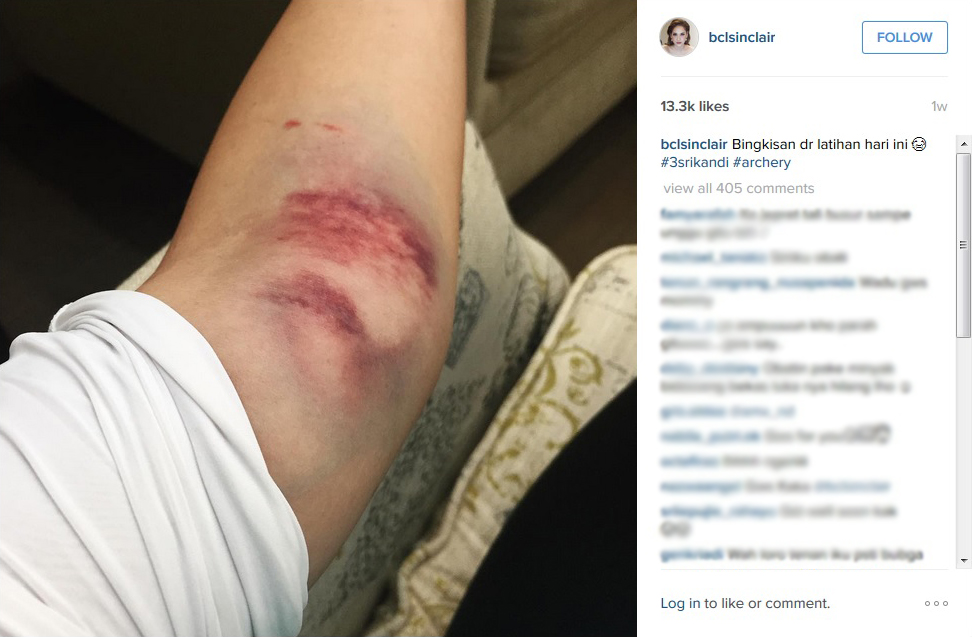 "Aku masih baru banget belajar panahan. Karena tekniknya masih salah, jadinya tanganku cedera. Tapi untungnya coach dan teman-teman gak bosen-bosennya buat nyemangatin dan mengajariku. Aku jadi semakin semangat buat belajar meskipun tangan masih sedikit bengkak," ujar artis sekaligus penyanyi Indonesia, Bunga Citra Lestari kepada rekan media, JUmat (24/07/15).