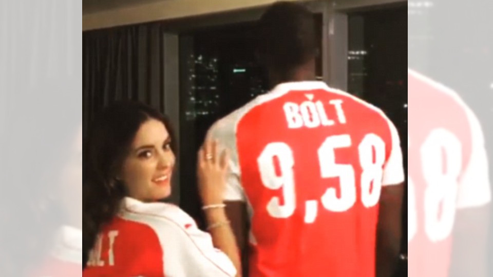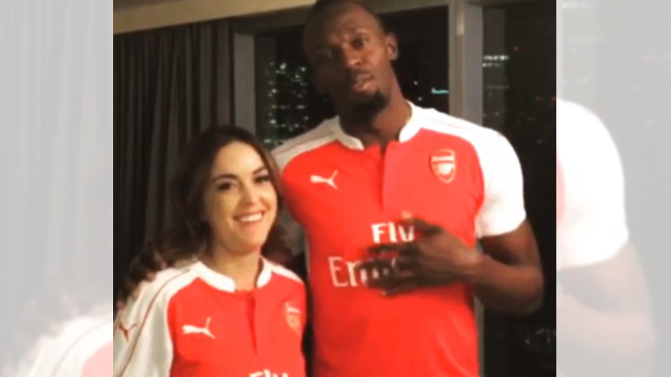 Bolt pun menepati janjinya dengan memakai jersey Arsenal. Melalui akun instagram pribadinya, Bolt mengunggah video saat memakai jersey Arsenal bersama Patty yang juga memakai jersey Arsenal.