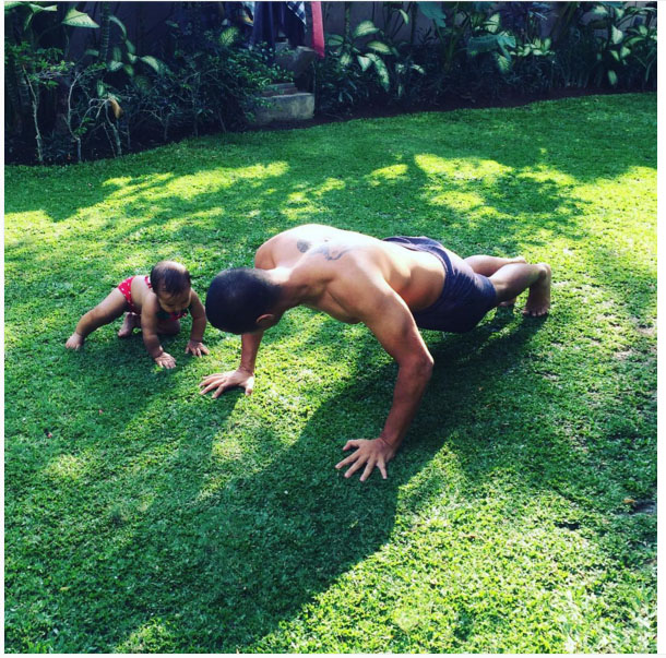 Menariknya tidak hanya Happy Salma yang gemar berolahraga agar tubuhnya tetap sehat dan bugar. Sang suami, Tjokorda Bagus juga rajin berolahraga, ia bahkan mengajarkan putri cantiknya untuk latihan push up dan berenang.