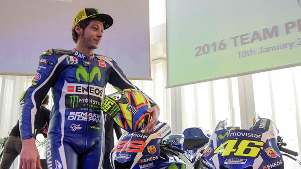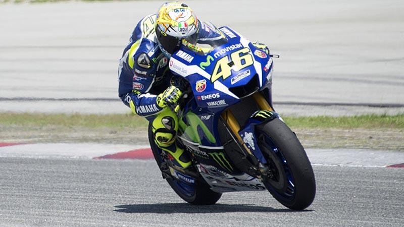 Aksi Valentino Rossi saat berada di lintasan balap.