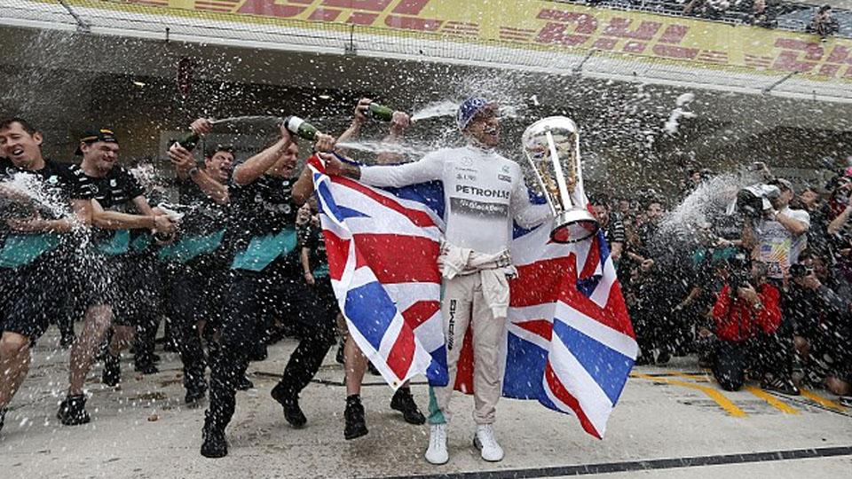 Juara dunia Formula 1 musim lalu, Lewis Hamilton bersama Tim Mercedes
