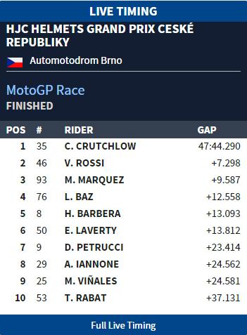 1. Cal Crutchlow GBR LCR Honda (RC213V) 47m 44.290s