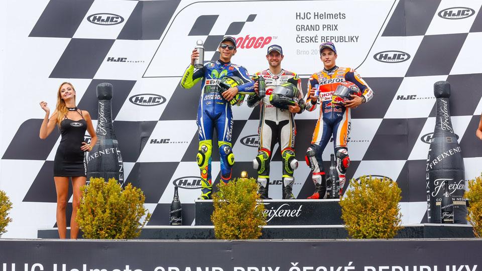 Valentino Rossi, Cal Crutchlow dan Marc Marquez di MotoGP Inggris.
