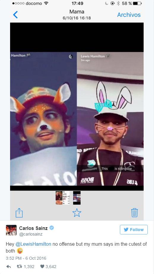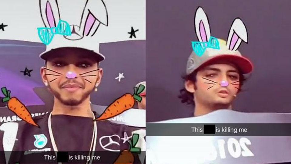 Foto-foto hasil Snapchat Hamilton pada sesi konferensi pers tersebar di media sosial.