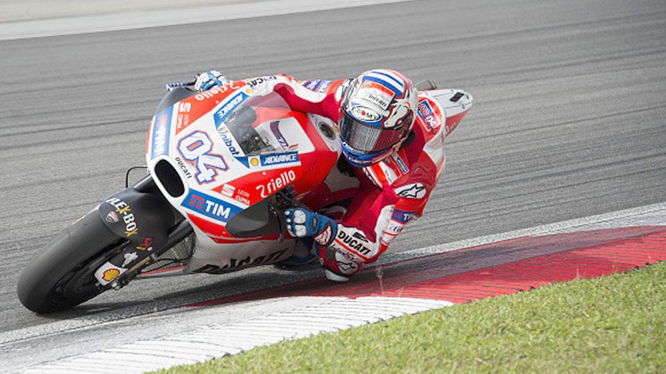 Pembalap Ducati, Andrea Dovizioso saat menjajal motor di Sepang.“Saya rasa motor menjadi lebih gampang belok, karena kami tidak menggunakan winglets. Namun, masih belum sempurna seperti motor lain,” kata Dovizioso.