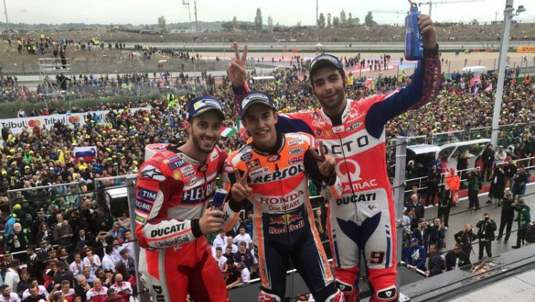 Baik Marquez dan Dovizioso juga sama-sama memenangkan total empat balapan sejauh ini. Sang pembalap Honda menang di GP Amerika Serikat, Jerman, Ceko, dan San Marino. Sementara Dovi finish terdepan di GP Italia, Catalunya, Austria, dan Inggris. Namun Baby Alien lebih unggul dengan mengunci delapan podium sedangkan rivalnya ini baru enam kali finish podium.