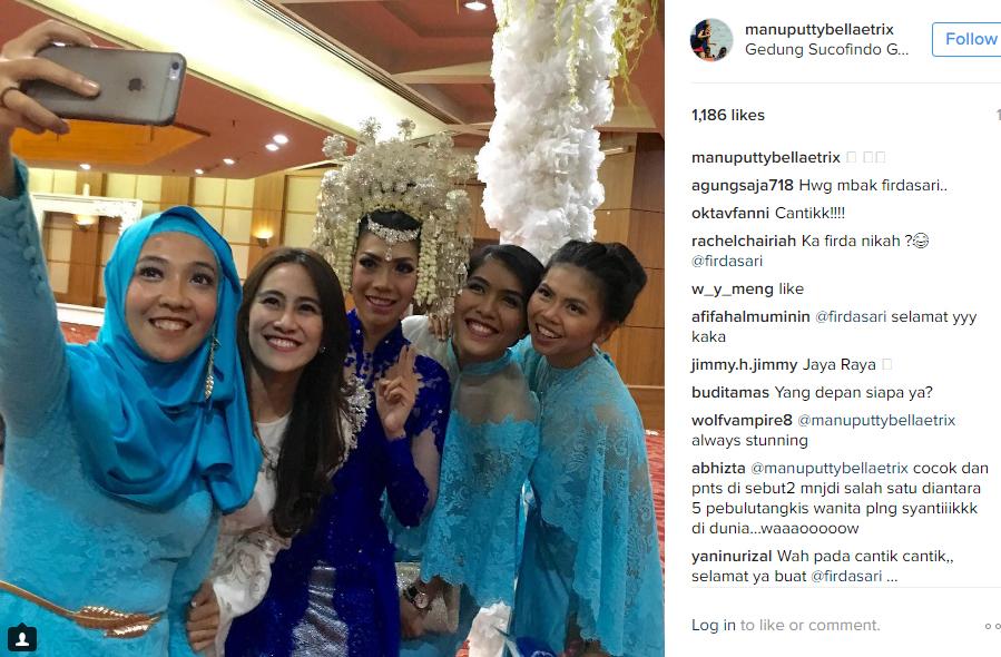 Hanya saja, kedatangan keduanya bukanlah sebagai tamu undangan. Sebab mereka berdua mendapat kehormatan menjadi pendamping mempelai wanita. Keduanya pun nampak manis dan cantik dengan memakai gaun payet berwarna biru langit.