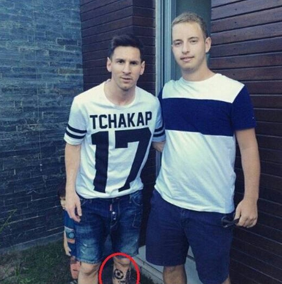 Selain memamerkan tato barunya, Messi sengaja memakai sebuah kaus olahraga dengan merk Tchakap. Kaus tersebut merupakan merk milik usaha Alex Song yang memang didukung oleh sang bintang.