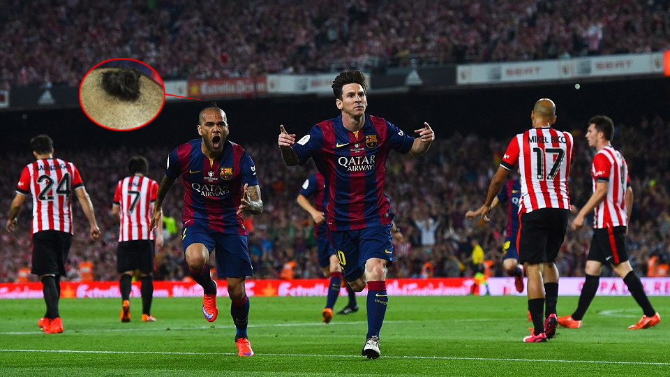 Lionel Messi tampil sebagai bintang dengan mencetak dua gol sementara satu gol El Barca disumbangkan oleh rekan setim Alves di timnas Brasil, Neymar Jr.