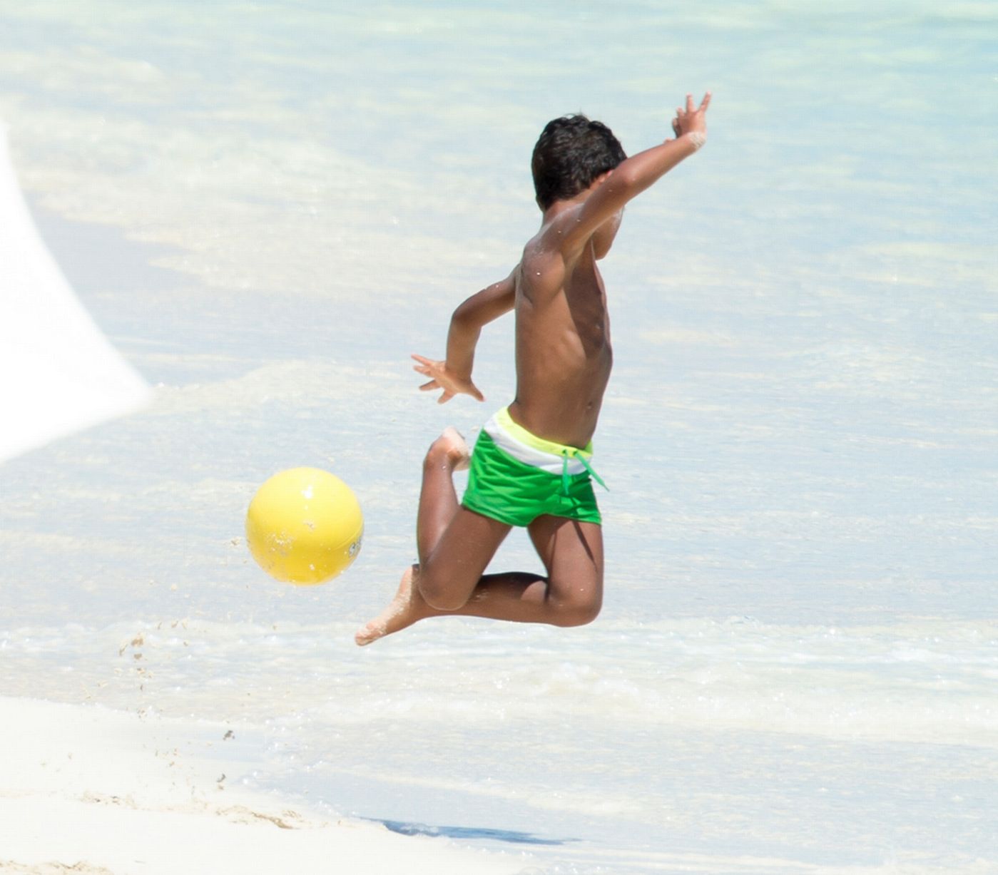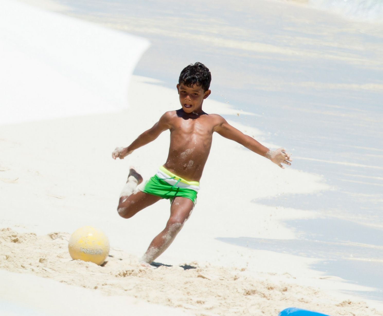 Dalam momen liburan tersebut, Cristiano Ronaldo terlihat sedang bermain sepakbola dengan anak laki-lakinya di sebuah pantai di kawasan Bahama.