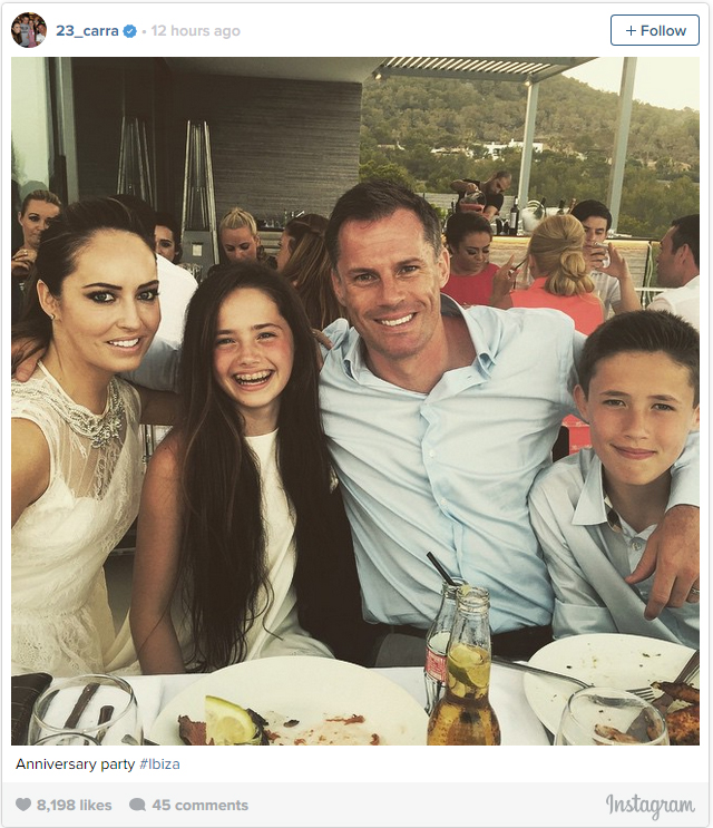Carragher pun membagikan momen bahagianya tersebut dengan sebuah foto lewat akun Instagramnya. Gambar pertama menunjukkan bahwa ia bersama istri dan dua anaknya berfoto dengan latar belakang laut.