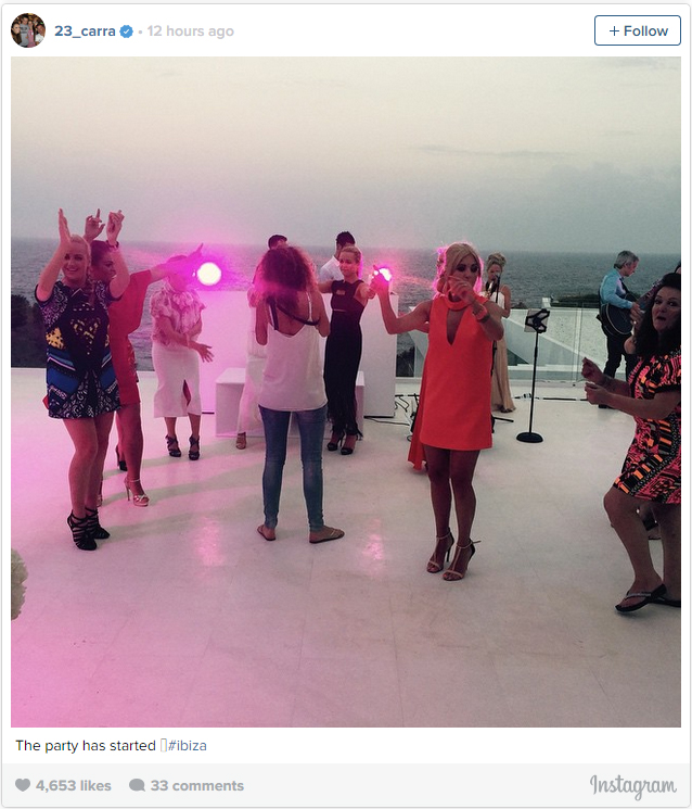 Kemudian di malam hari, Carragher memposting foto yang menunjukkan para tamu sudah mulai turun ke dancefloor setelah menikmati makan untuk merayakan kesempatan saat matahari terbenam di pulau yang indah.