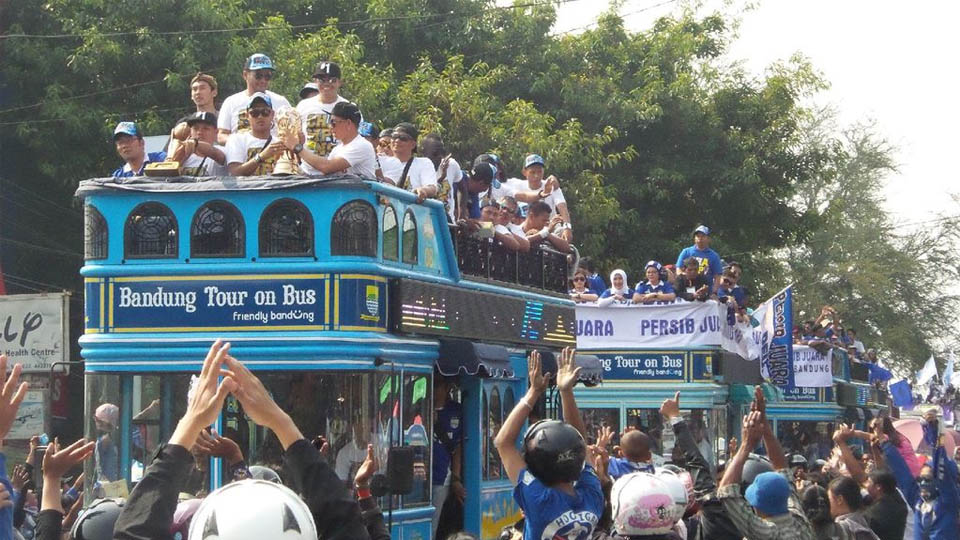Skuat Persib sendiri diarak menaiki bus wisata Bandros. Mereka melakukan konvoi sepanjang 21 kilometer.