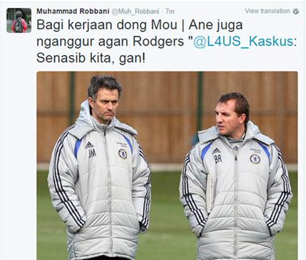Lain lagi dengan meme yang diunggah pemilik akun @Muh_Robbani. Di meme itu, memperlihatkan Mou tengah curhat dengan mantan pelatih Liverpool, Brendan Rodgers.