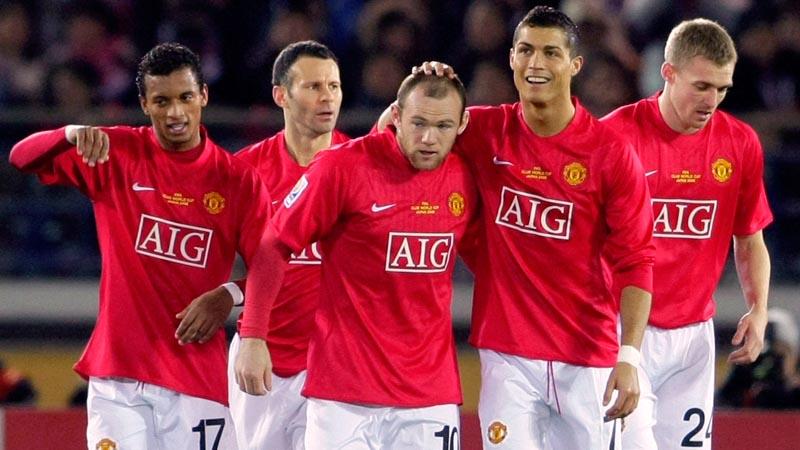 Cristiano Ronaldo melakukan selebrasi bersama rekan-rekannya di Manchester United