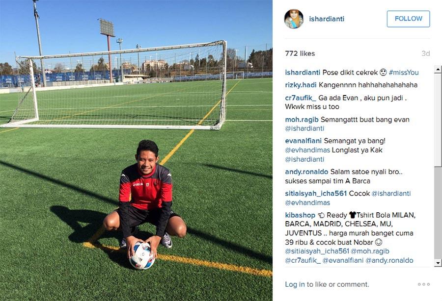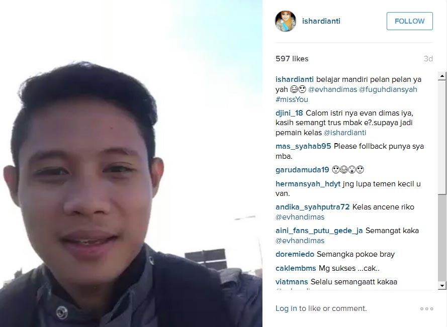 Lewat akun Instagram pribadinya, @ishardianti, kekasih Evan Dimas yang memiliiki nama lengkap Ishardianti Rahma, tak mampu menyembunyikan kerinduannya kepada sang kekasih, yang saat ini berada di Spanyol.