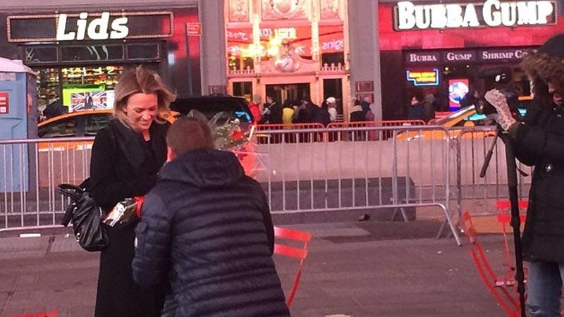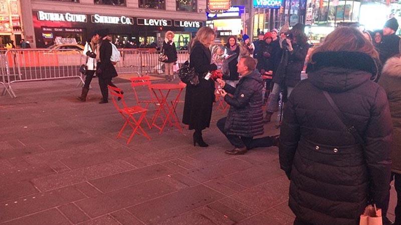 Membuktikan rasa cintanya, lelaki 43 tahun itu tanpa segan berlutut di hadapan pujaan hatinya di tengah keramainan Town Square, kota New York, Amerika Serikat.