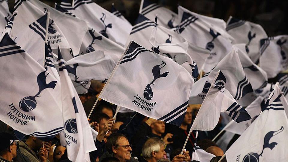 Para pendukung Tottenham Hotspur membentangkan bendera kebanggaan di White Hart Lane