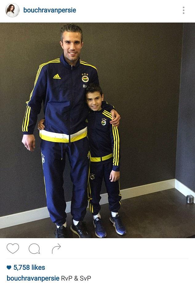 Seperti diberitakan Daily Mail, istri Van Persie, Bouchra mengunggah foto RvP bersama sang anak Shaqueel van Persie yang mengenakan jaket Fenerbahce.