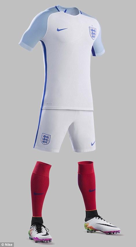 Meski masih didominasi warna putih dan biru langit, jersey home Timnas Inggris ini memiliki sentuhan berbeda. Jika sebelumnya jersey yang digunakan full putih, kali ini ada warna biru langit di bagian pundak hingga lengan. Selain itu, kaos kaki yang digunakan juga bukan putih melainkan merah.