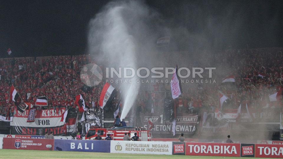 "Di Bali memang cuaca tak menentu. Kadang hujan waktu sore atau malam, tapi siangnya panas sekali. Siraman air dari mobil pemadam kebakaran pun cukup menyejukkan suporter di tribun," ujar Made Putra, salah satu penonton di tribun VIP Stadion Dipta.