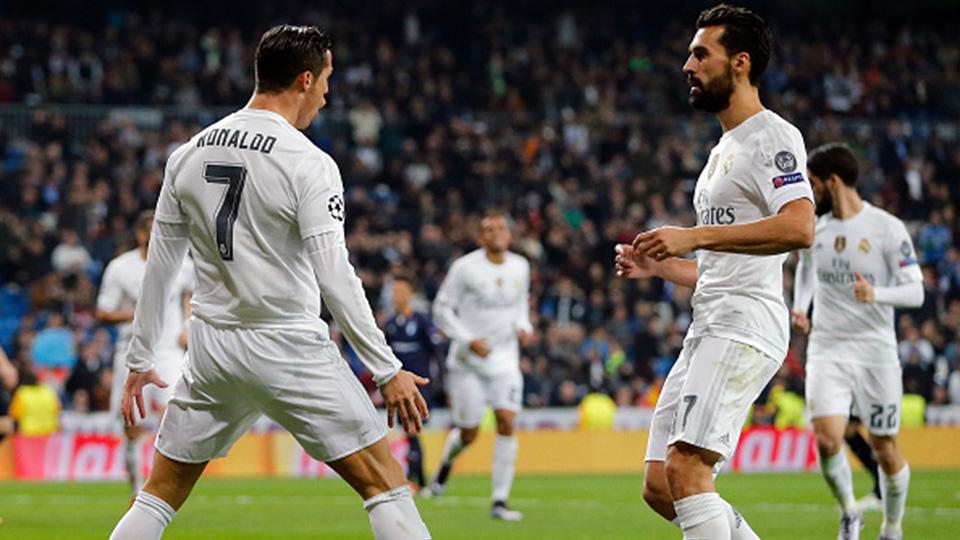 Cristiano Ronaldo melakukan selebrasi bersama Alvaro Arbeloa usai mencetak gol