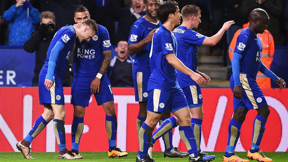 Selebrasi para pemain Leicester City di pentas Liga Primer Inggris