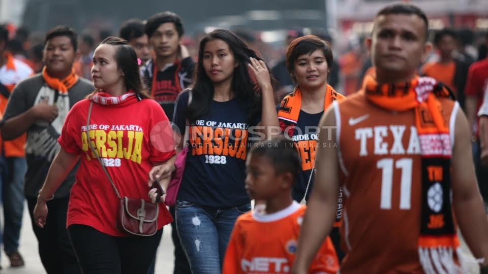 The Jakmania berbondong-bondong datang ke Stadion Gelora Bung Karno, Senayan Jakarta