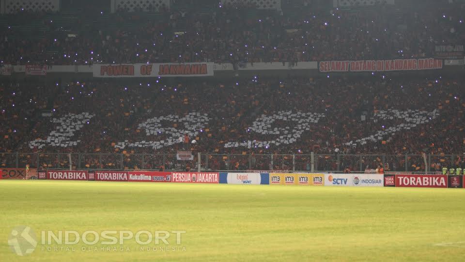 The Jakmania membentuk koreografi '1997' saat laga Persija Jakarta vs Semen Padang