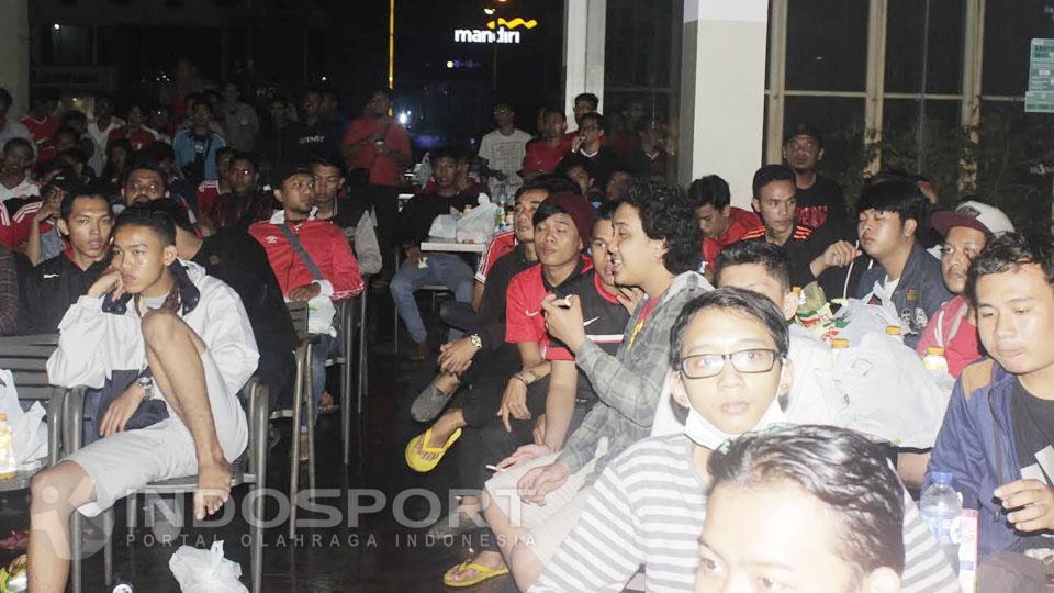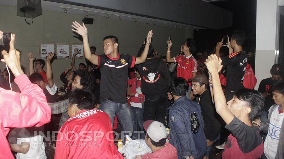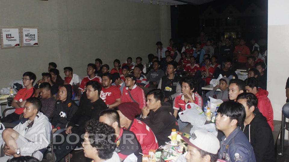 Suasana kemeriahan nonton bareng komunitas United Jakatara di Family Mart, Kelapa Gading.