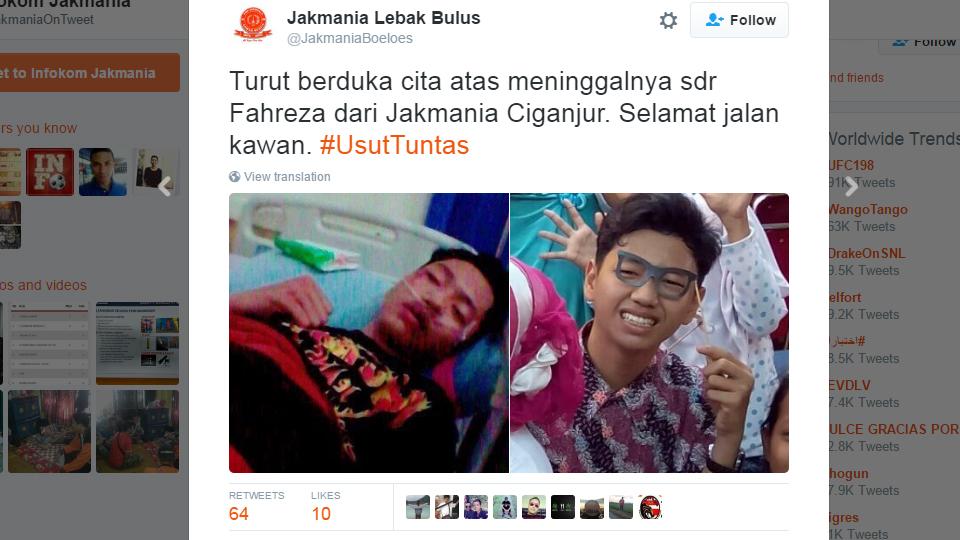 Fahreza, anggota Jakmania yang diduga tewas akibat dikeroyok oknum polisi.