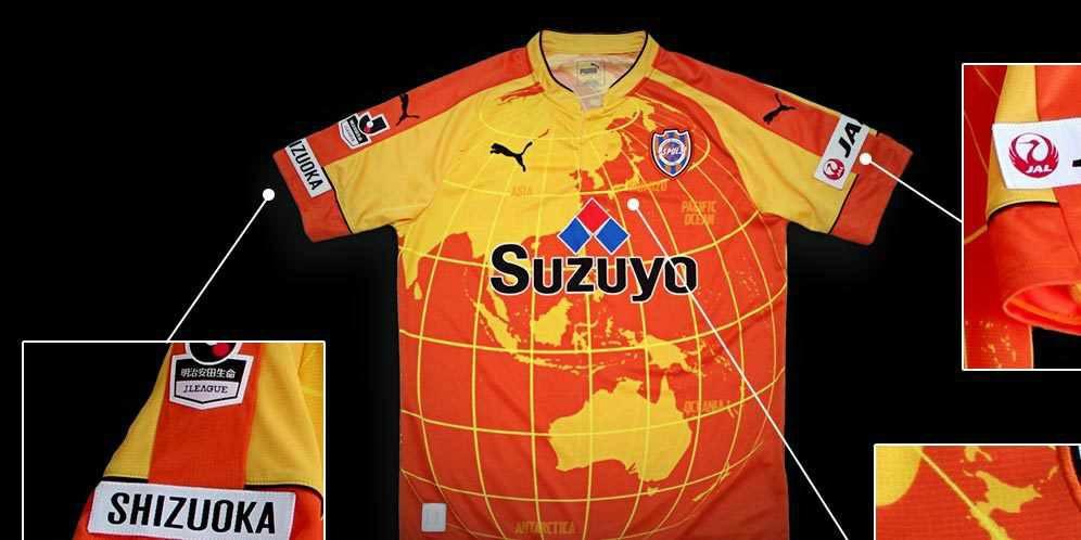Peta Indonesia terlihat dengan jelas pada jersey klub, Shimizu S-Pulse, sebuah klub dari kompetisi J-League 2 dari Jepang.