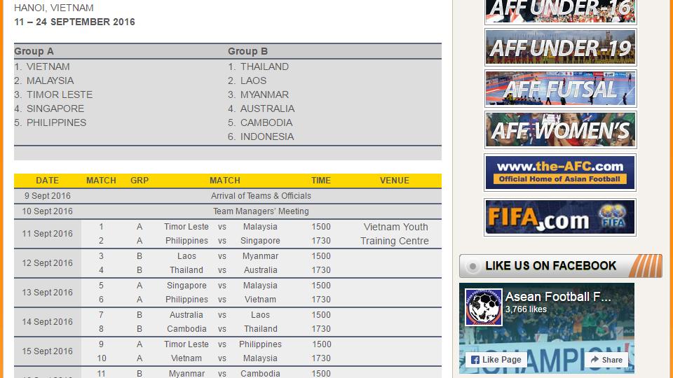 Sementara itu Grup A dihuni oleh Malaysia, Vietnam, Timor Leste, Singapura dan Filipina. Piala AFF sendiri akan digelar pada 11-24 September di Hanoi, Vietnam.