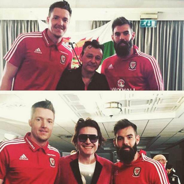 Personel Manic Street Preachers bersama pemain Wales.