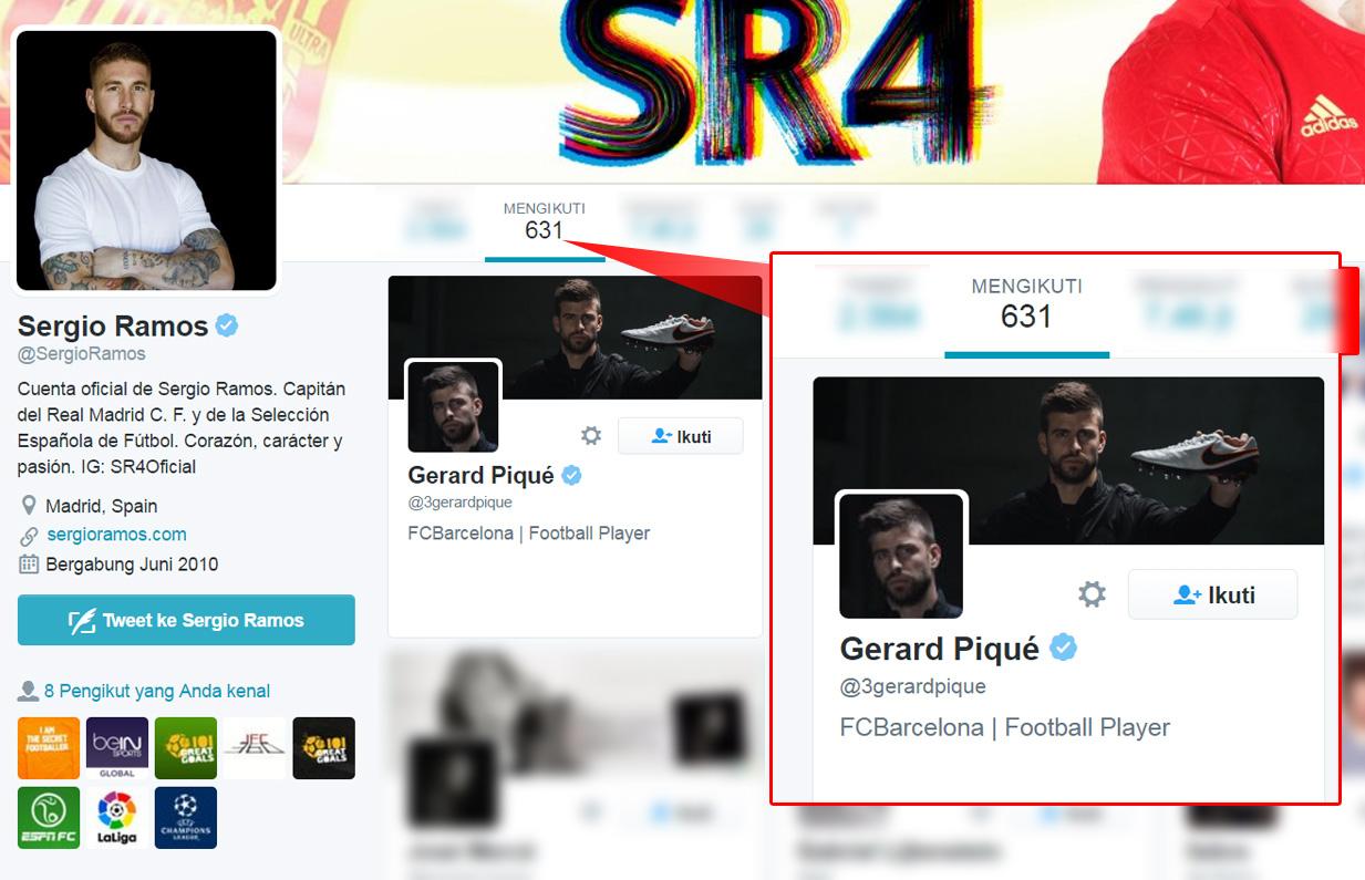 Aksi saling follow di Twitter antara keduanya tersebut benar-benar baru terjadi setelah Pique menjadi pahlawan kemenangan Spanyol. Jauh bertahun-tahun sebelumnya, Pique dan Ramos bahkan sama sekali tak berteman dan tak saling follow di Twitter.