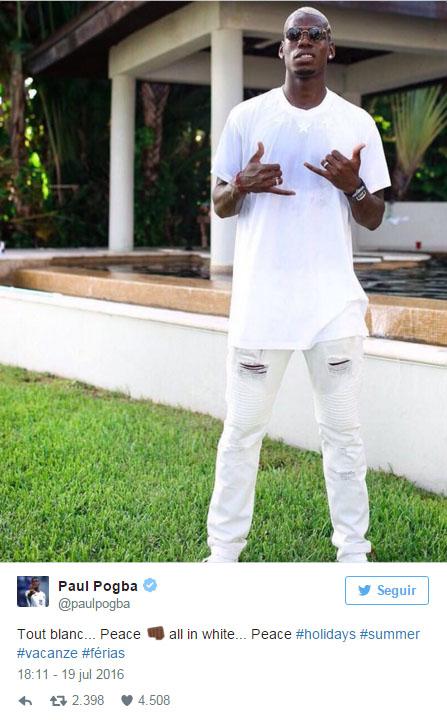 Ketika santai pun, Il Polpo Paul terlihat modis. Dengan kaos corak, sepatu sneakers, topi, dan aksesoris bling-bling membuat Pogba terlihat bak penyanyi hip-hop Amerika.
