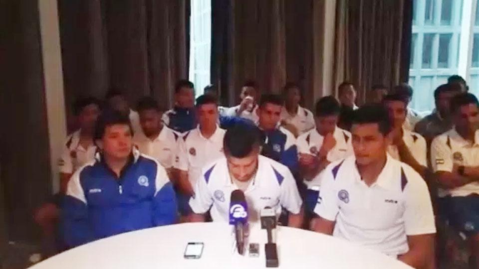 Skuat El Salvador saat sedang press conference sebelum pertandingan melawan Kanada.