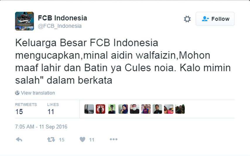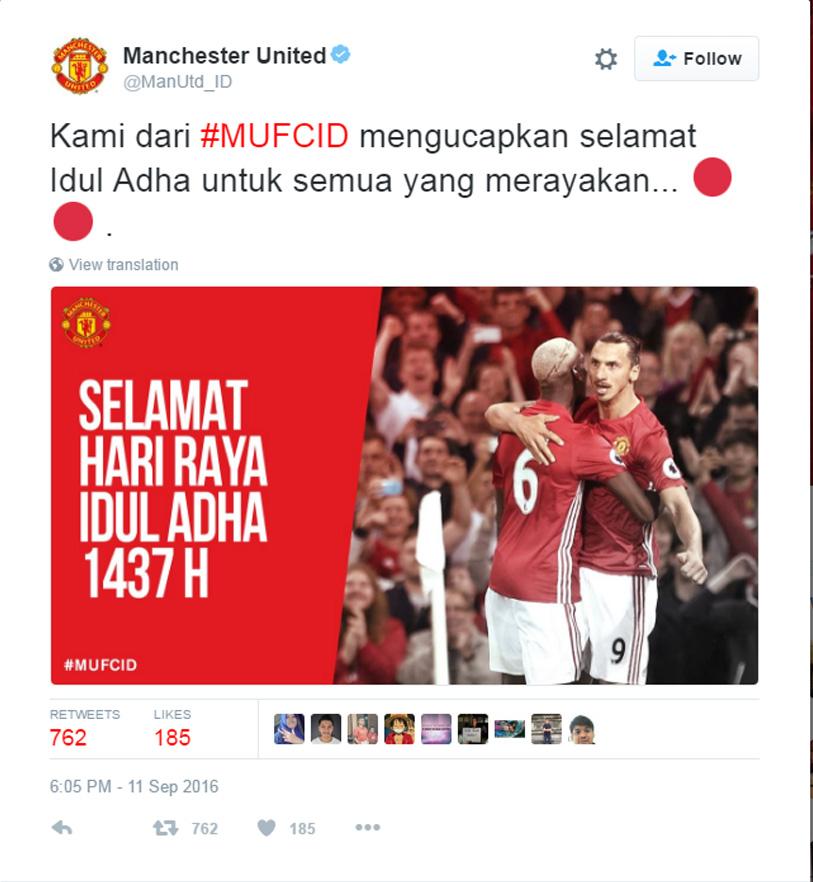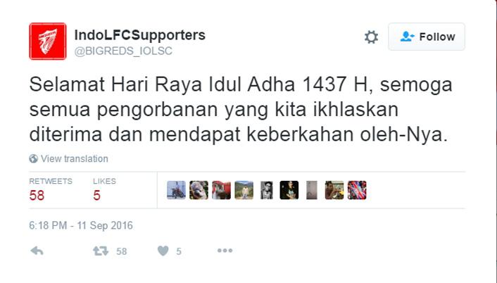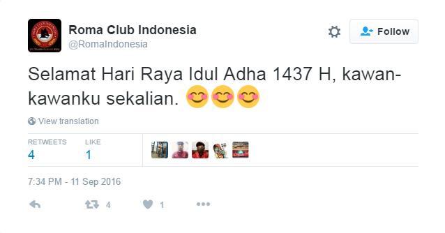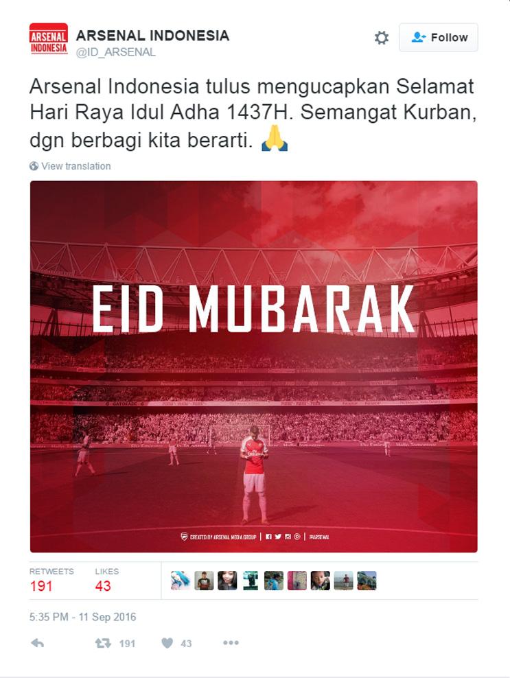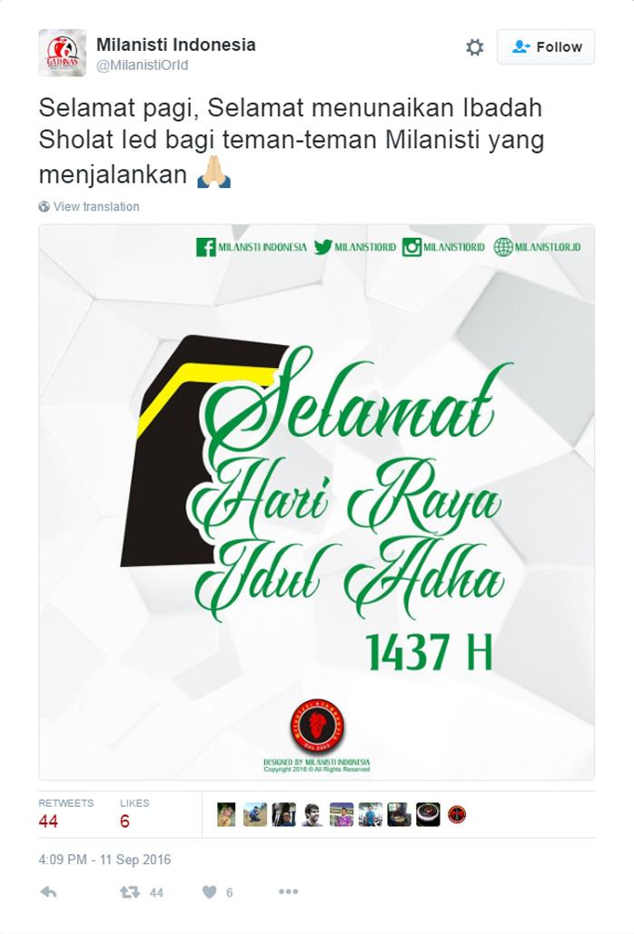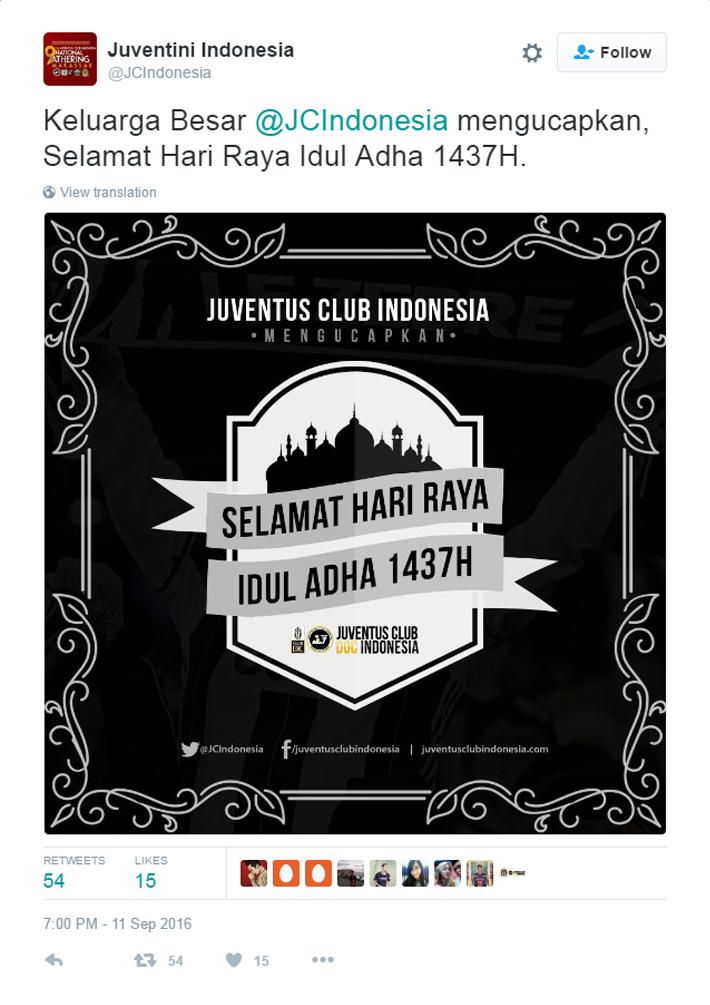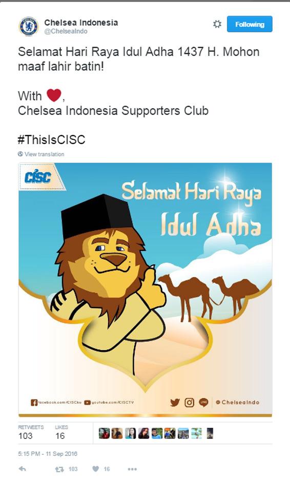 Sama halnya seperti klub-klub di Torabika Soccer Championship (TSC), mereka juga memberikan ucapan Selamat Idul Adha melalui akun media sosial Twitter resmi mereka masing-masing.