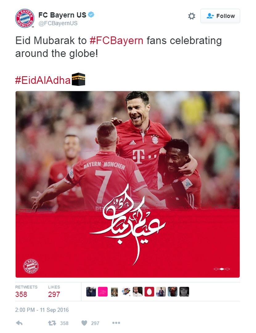 Untuk Bayern Munchen, ucapan datang langsung dari akun resmi Twitter mereka yang berasal dari AS.