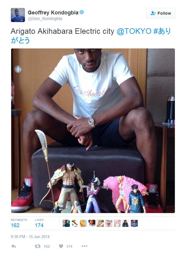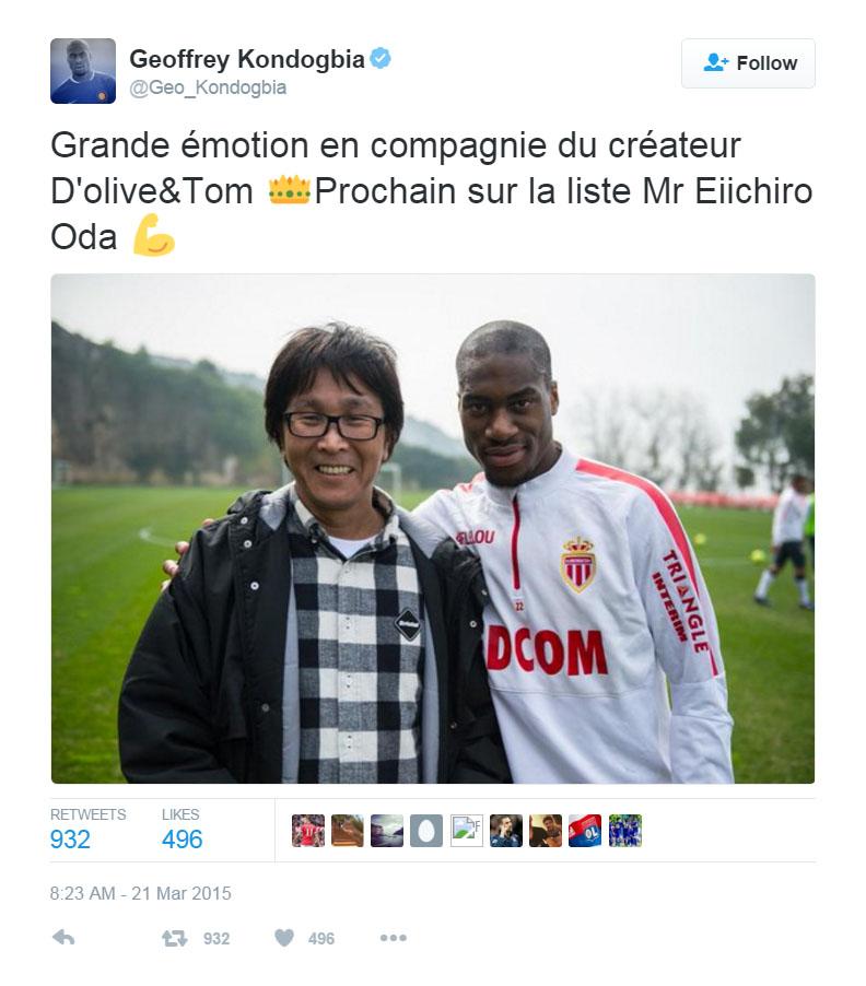 Tidak berhenti disitu, ketika Eichiro Oda sang pencipta animas One Piece datang ke Prancis pada 2015 lalu, Kondogbia yang masih berstatus pemain AS Monaco pun menyempatkan diri untuk berfoto bersama.