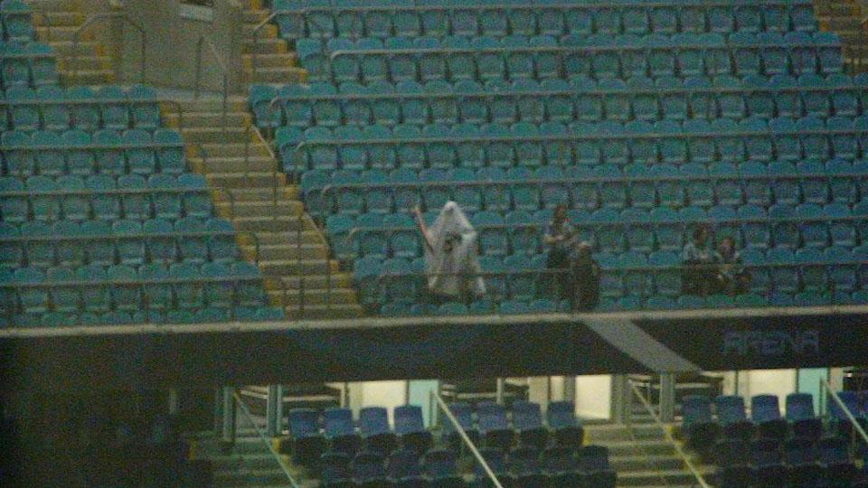 Selain mengenakan kain berwarna putih, fans yang belum diketahui namanya itu juga menambahkan bola mata dan tulisan B di kain tersebut. Sosok itu kembali terlihat di Piala Brasil, saat Gremio menang 2-1 atas Palmeiras.