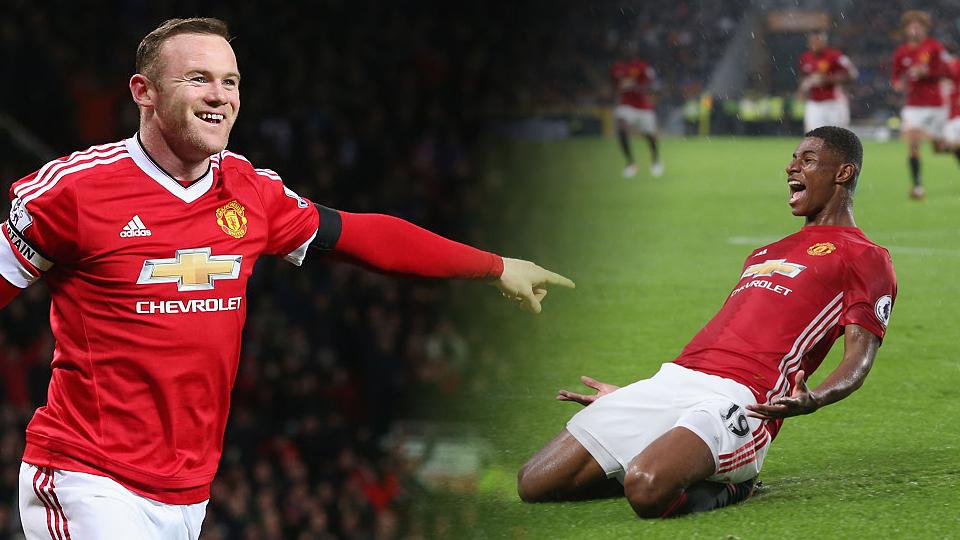 Wayne Rooney (kiri) dan Marcus Rashford (kanan)