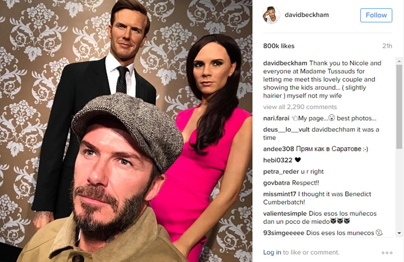 Melalui akun Instagramnya, Beckham mengambil fotonya dirinya yang dijadikan patung lilin. Namun, pria yang juga pernah bermain untuk AC Milan dan Paris Saint-Germain ini tidak menyebutkan Madame Tussauds negara mana yang memaparkan dirinya tersebut.
