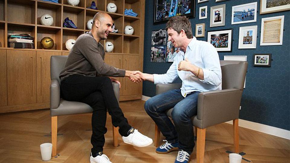 Noel Gallagher (kanan) bersama pelatih Manchester City, Pep Guardiola.