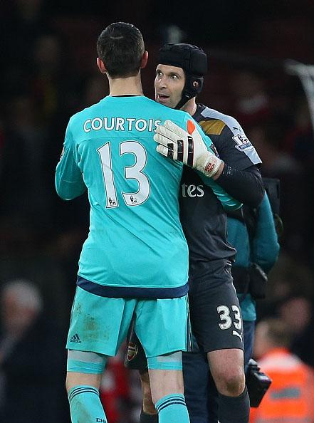 Thibaut Courtois (kiri) dan Petr Cech bertemu pertama kalinya sebagai lawan di musim 2015/16 lalu.